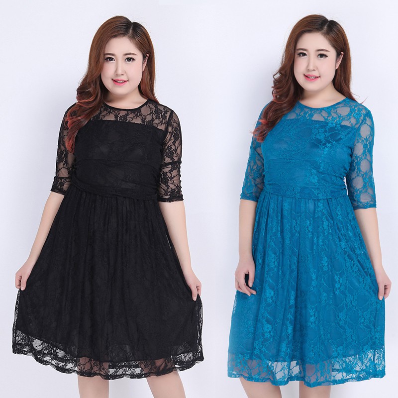 Women Fashion Plus Size Midi Dress Lace Summer Dinner Dress