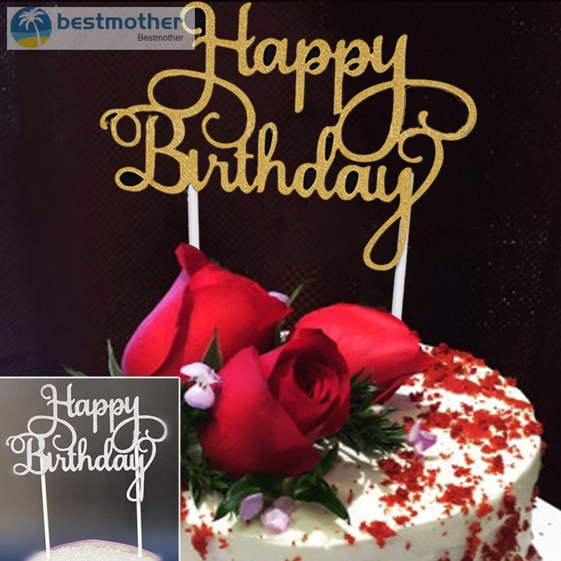 Bm Happy Birthday Cake Pick Topper Gold Glitter Party