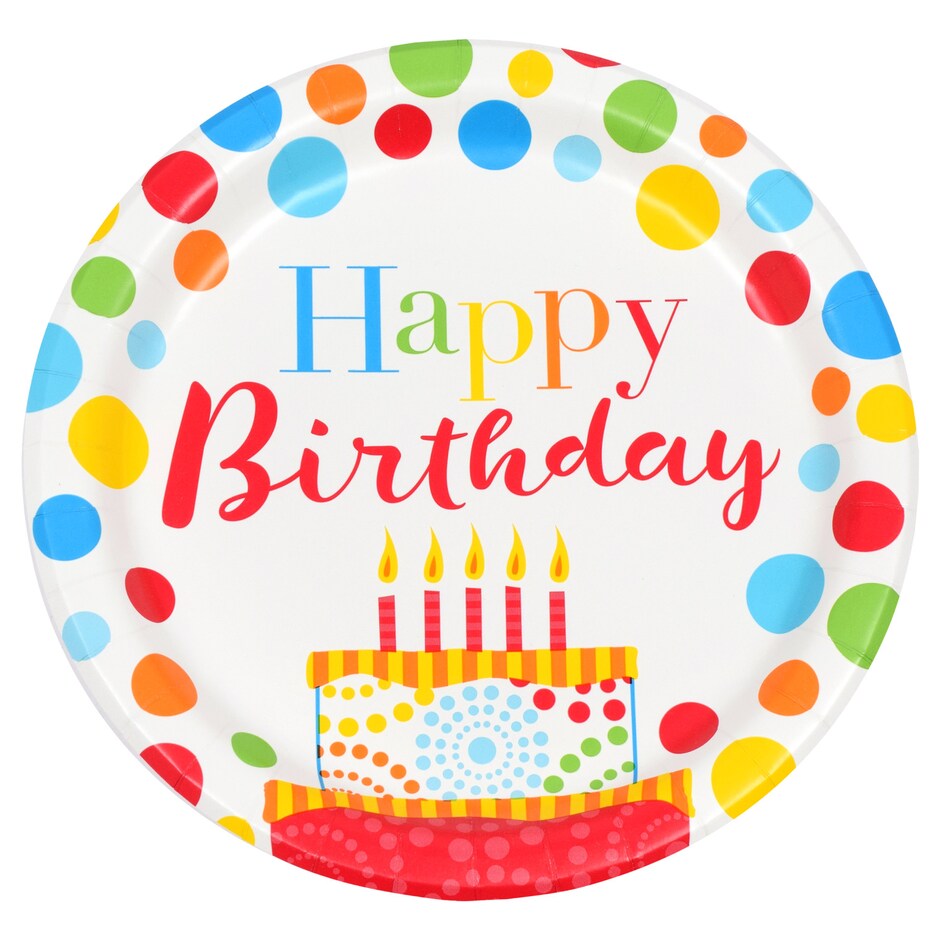 Bulk Rainbow Happy Birthday Printed Paper Party Plates 18 Ct