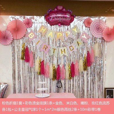 Baby Girl Princess Birthday Party Decor Happy Birthday Banner With